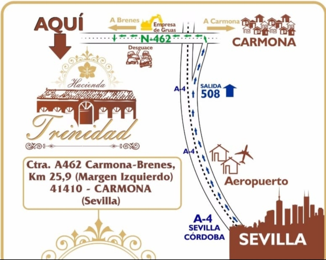 Si no te llevas bien con el GPS de tu coche, te ayudamos a encontrar la Hacienda Trinidad con la ayuda de este mapita.